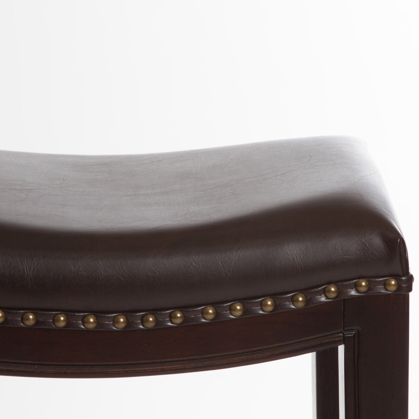 - Coming with a wooden frame, this stool will be an aesthetically appealing, long-lasting piece of furniture for any home.It is made with a faux leather seat, adding a stylish touch.