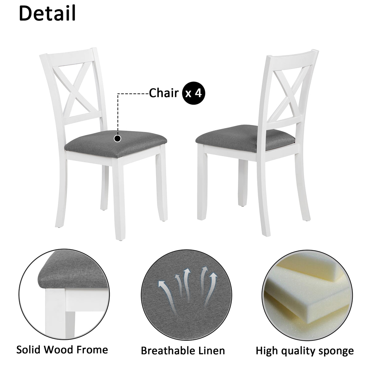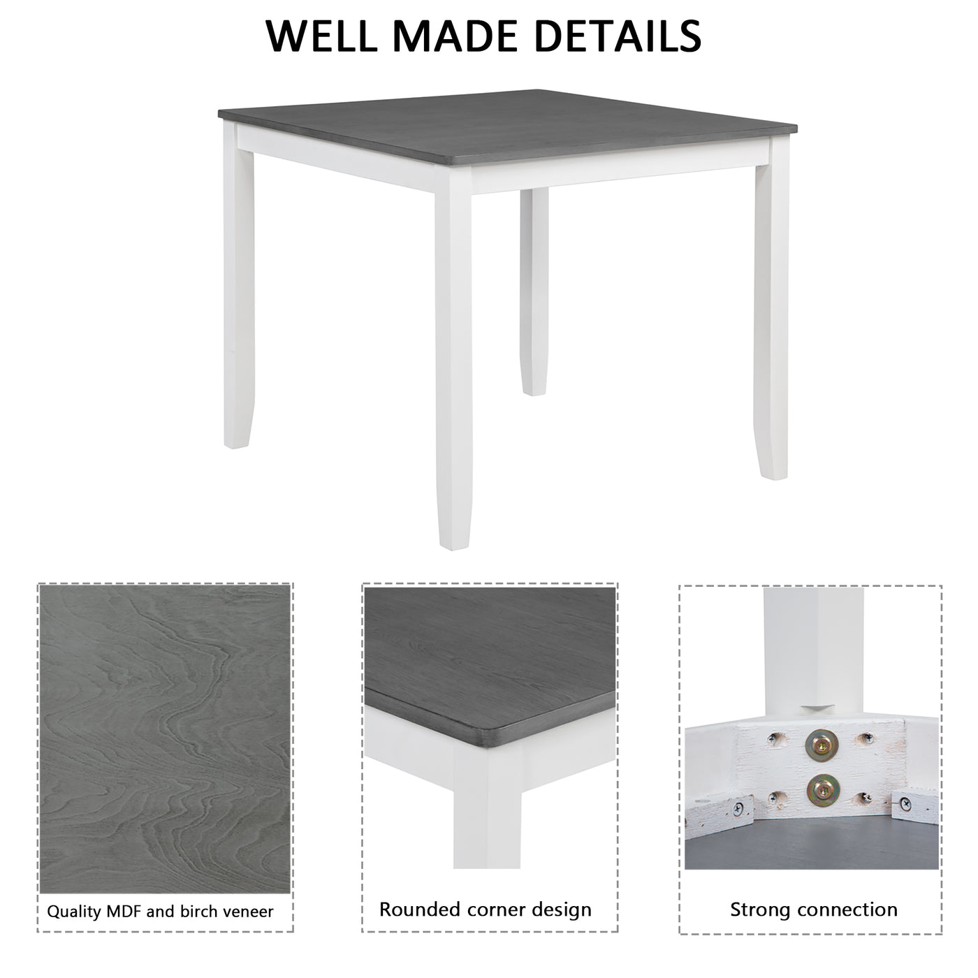 LuxeHome 5-Piece Modern Dining Table Set with 4 Chairs, Grey & White