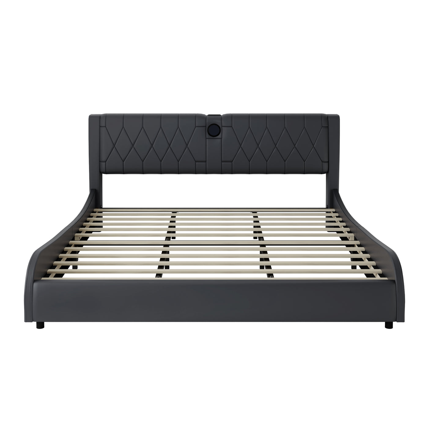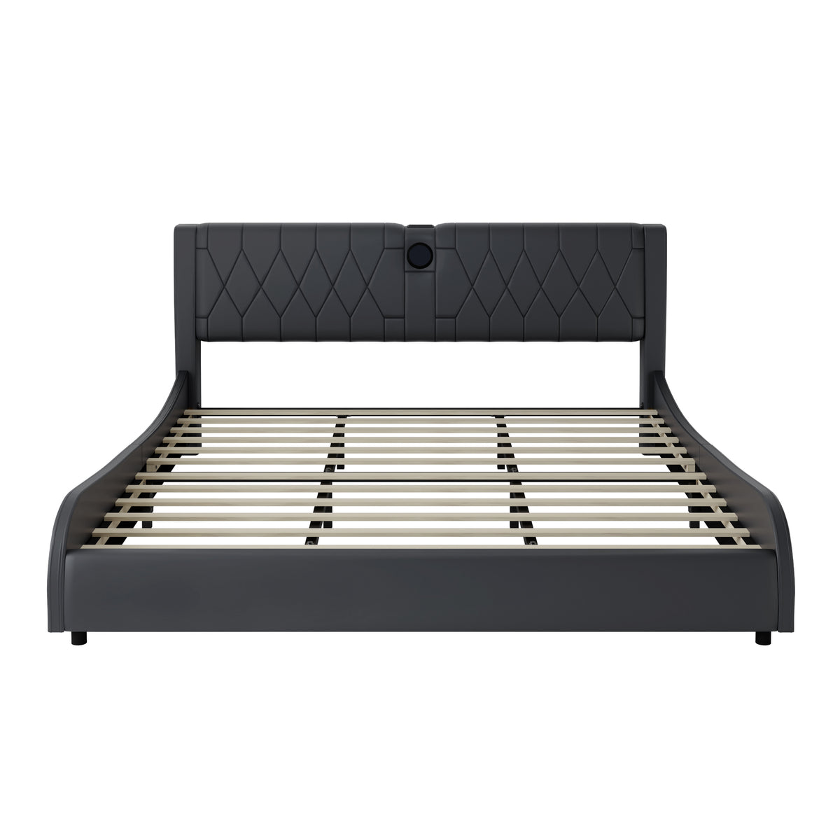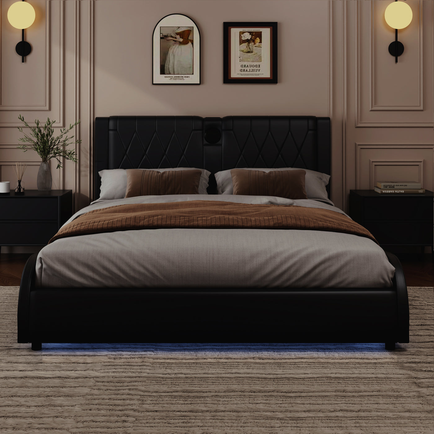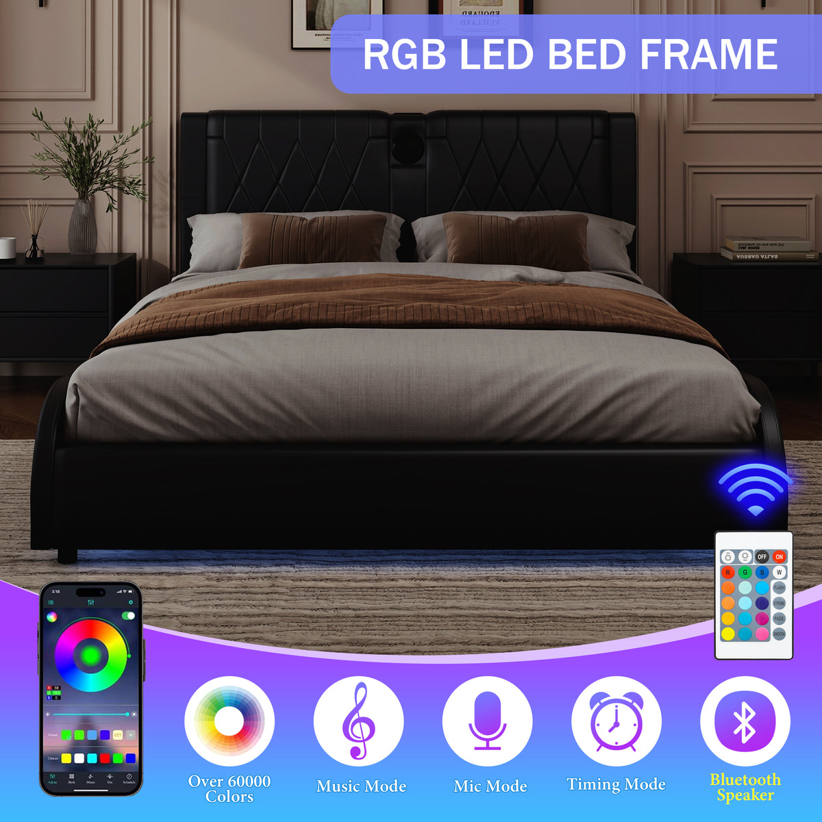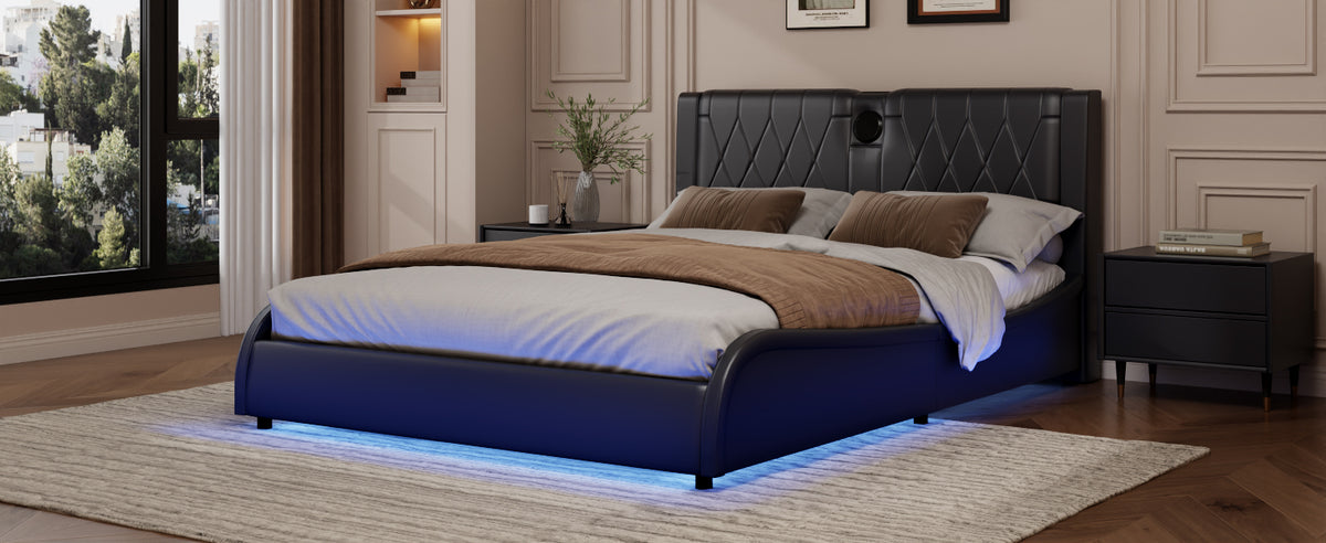 Transform your bedroom into a futuristic haven with our RGB LED Leather Upholstered Bed. Featuring a luxurious thickened PU leather headboard and integrated Bluetooth speakers, this bed offers both comfort and high-tech convenience. The adjustable RGB LED lights set the mood, while the Bluetooth speakers let you enjoy music wirelessly. Easy to clean and maintain, this bed is designed for those who want a stylish yet functional addition to their bedroom