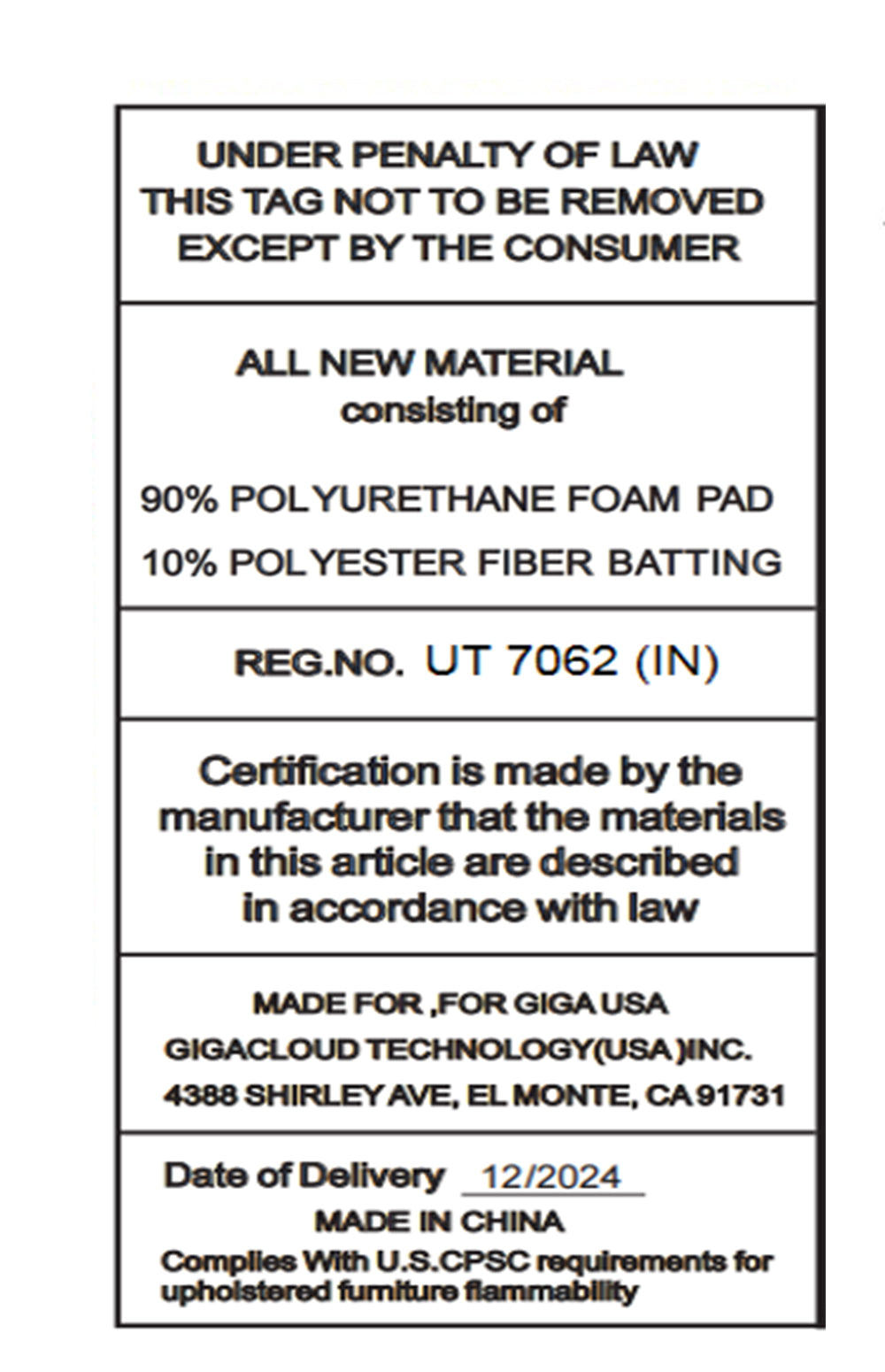 - Items will arrive in factory packed cartons. Please inspect items prior to signing of delivery documents.