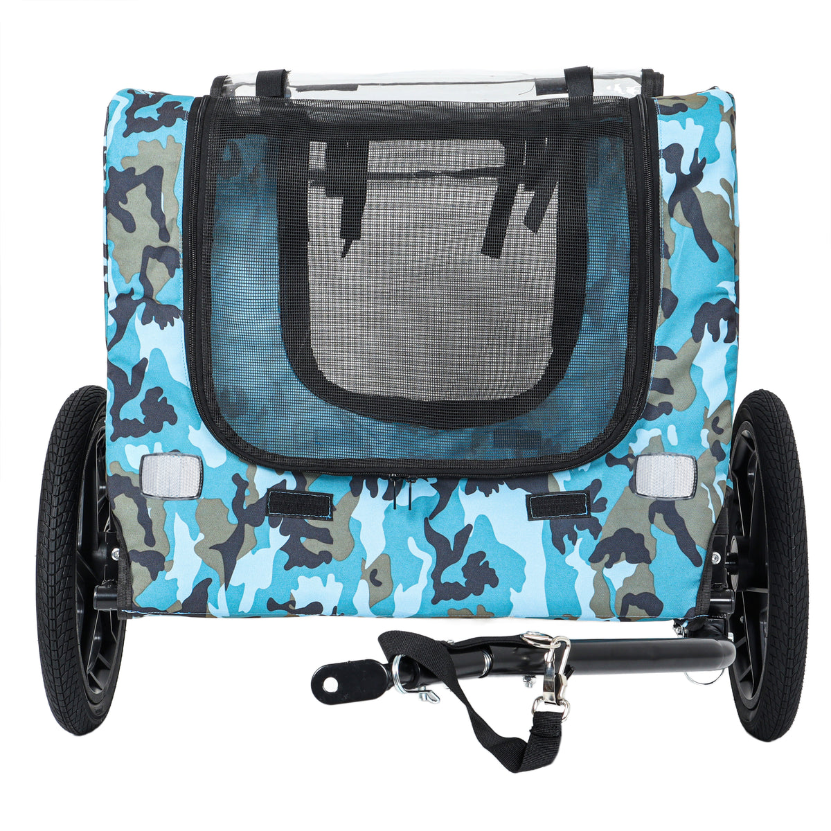 - Enhanced Safety & Secure Design: A built-in safety belt anchors your pet snugly to prevent escapes, while a crash-resistant guard and high-visibility safety flag add extra protection. Reflective strips along both sides boost nighttime visibility, ensuring you and your pet stay seen during dusk or dawn rides.