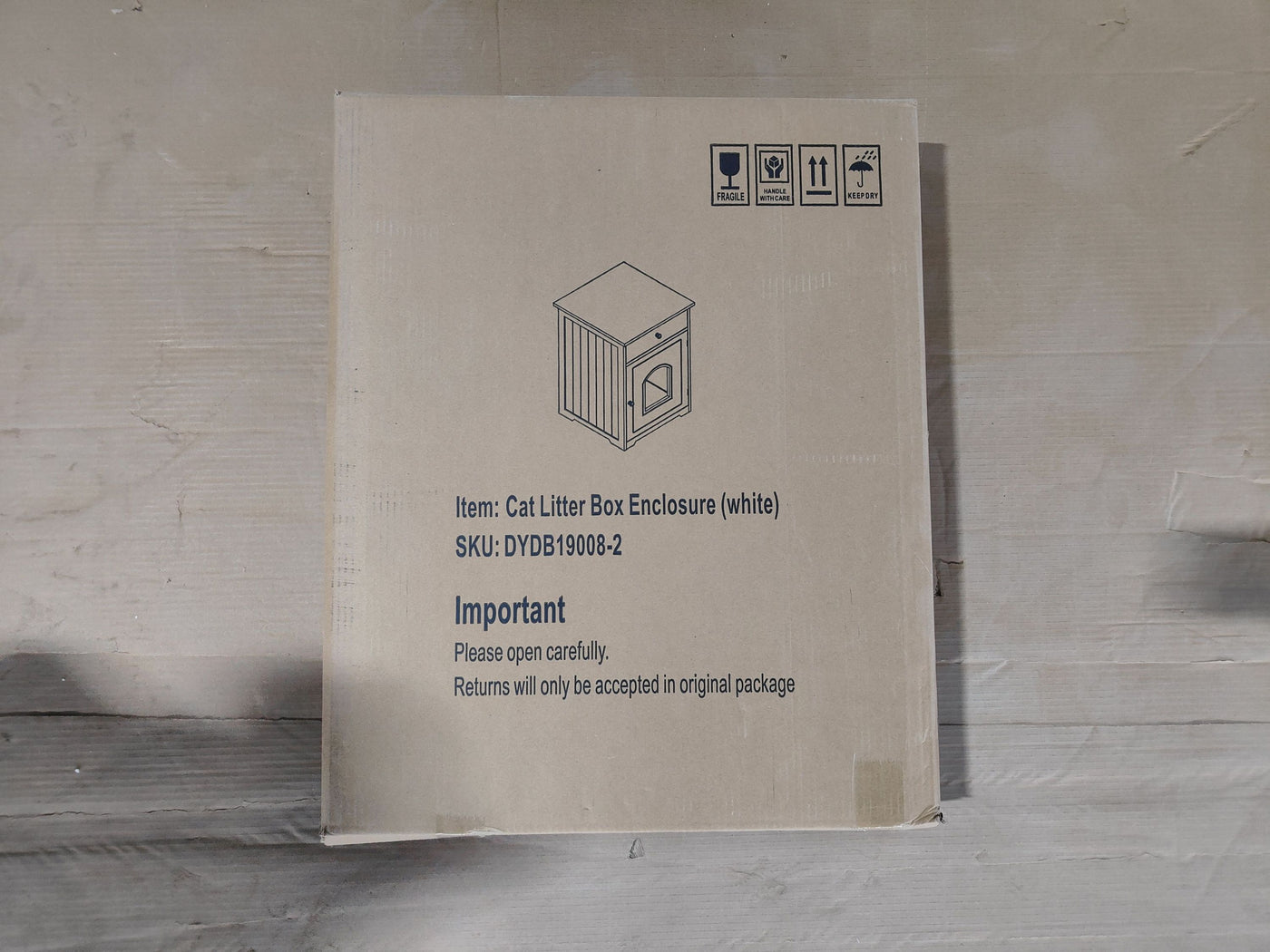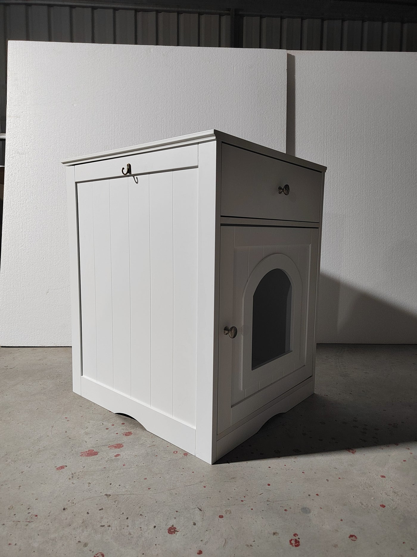 Furora White Cat Litter Box Enclosure, Indoor Pet House Nightstand
