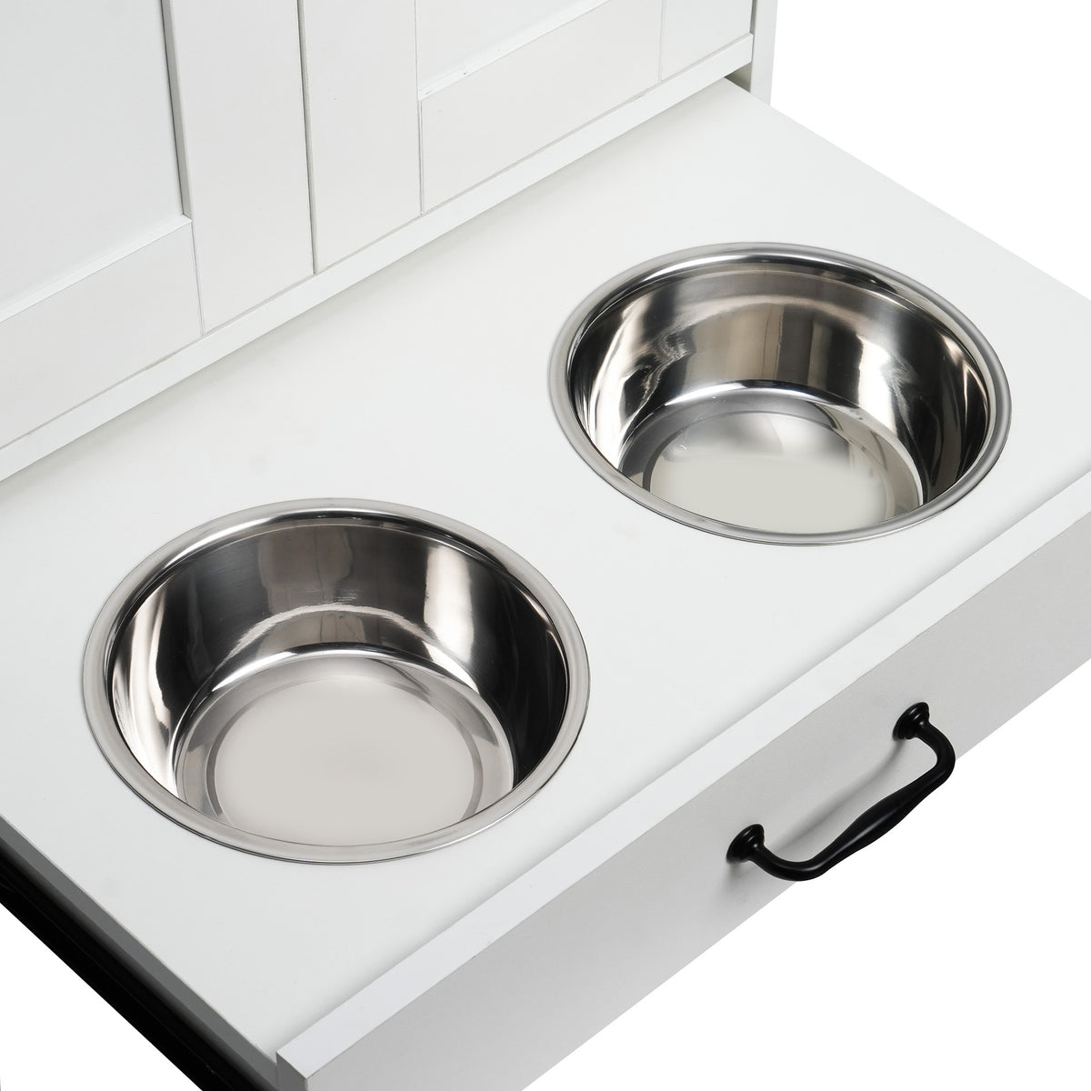 - 3,Durable & Easy to Clean: Two stainless steel bowls in the drawer is removable and can be placed separately for food and water to avoid trouble and mess. Meanwhile, the bowl can secure in drawers without tipping or kicking across the floor.