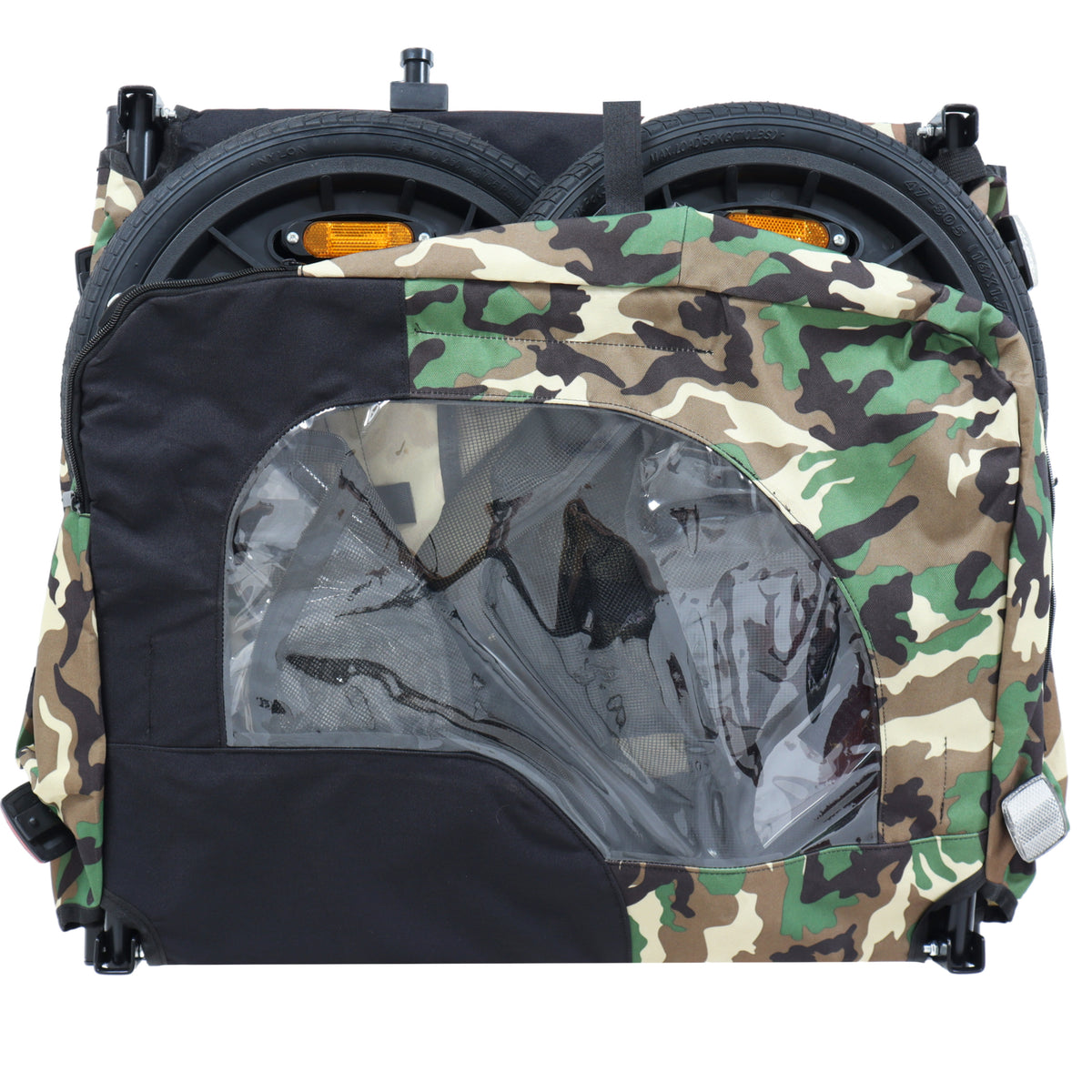 - Foldable Frame: The unique folding frame makes the pet trailer easy to store and bring along on your next adventure! The low maintenance, 16 inch, 1-piece molded nylon wheels have air-filled tires that easily inflate with standard bike pump. Do not over-inflate