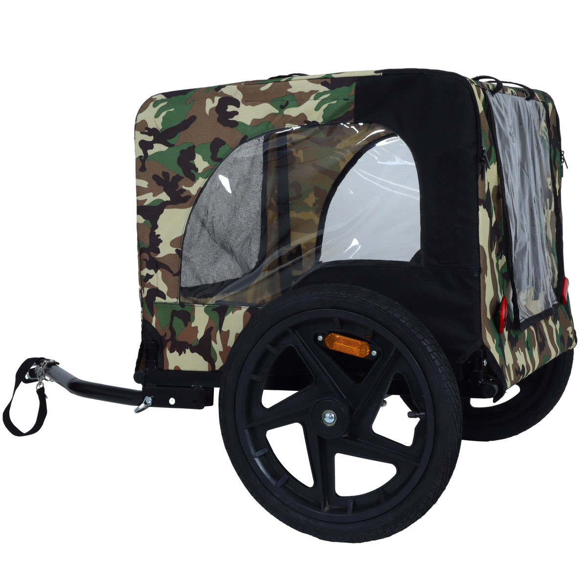 - WEATHERPROOF & BREATHABLE - Weather-resistant fabric with a 2-in-1 canopy and mesh shield allows your dog to enjoy the ride in the bike trailer. Mesh windows and a spacious roof opening in the pet cage ensure proper ventilation, letting your pet enjoy the breeze and the view.