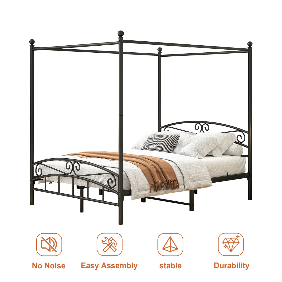 Linea Simple Queen Size Metal Canopy Bed Frame