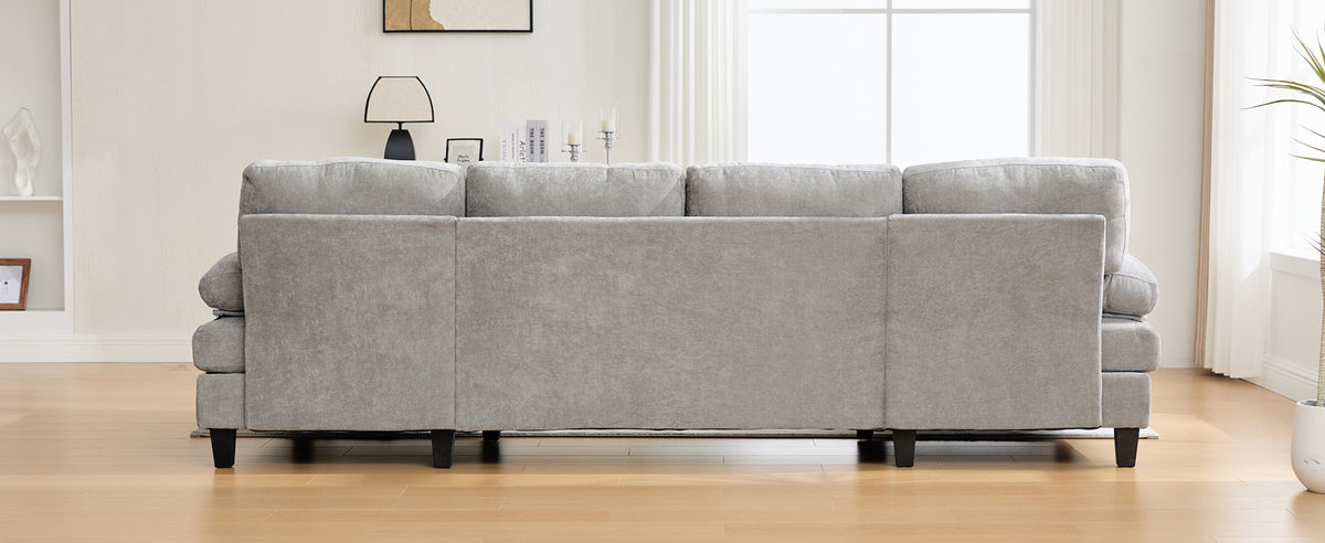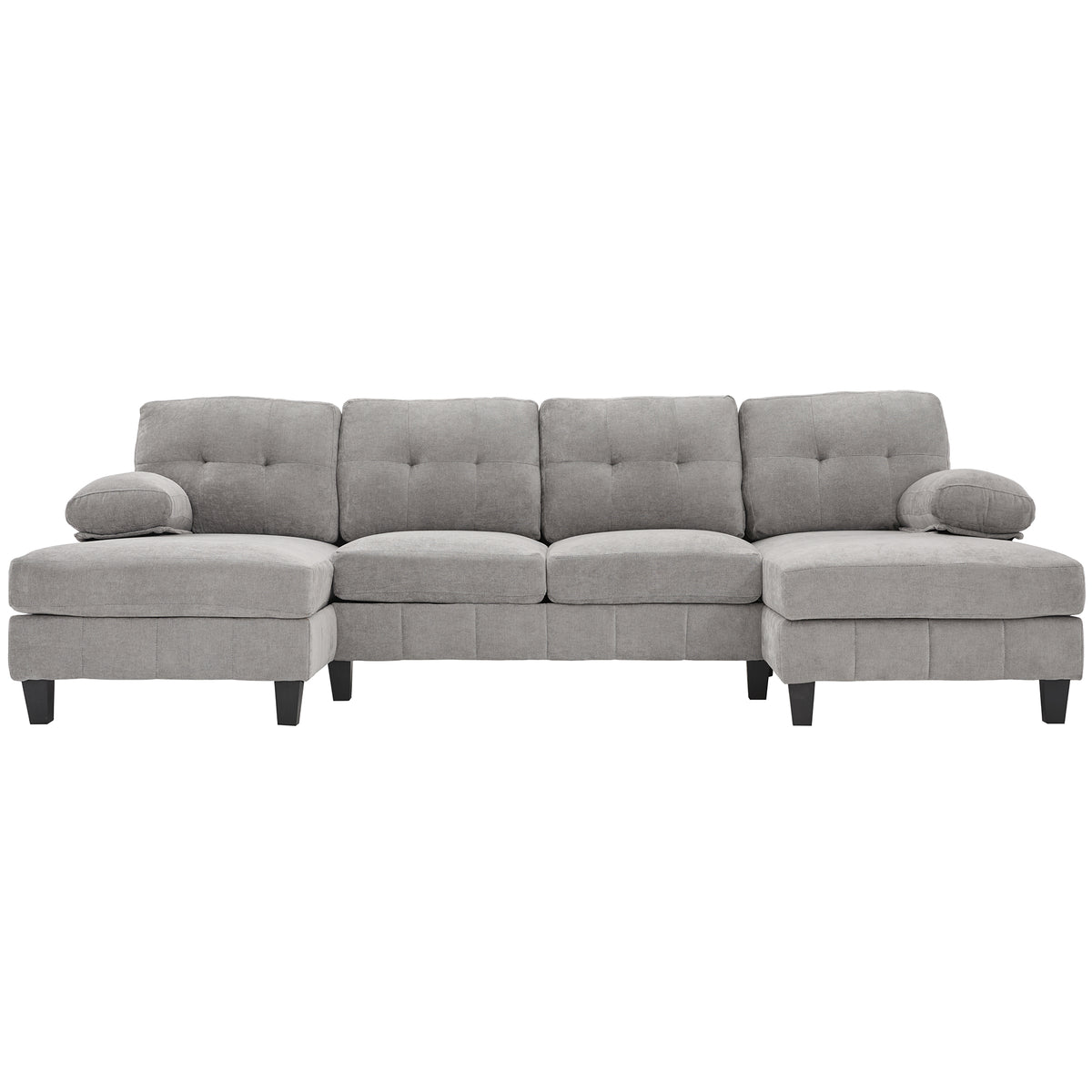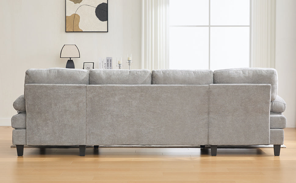 - Spacious U-Shaped Design - This generously sized U-shaped sectional sofa features two chaise lounges, offering ample seating and lounging space for family and guests. The dual-chaise layout is ideal for stretching out on either side, making it perfect for movie nights, social gatherings, or cozy relaxation.