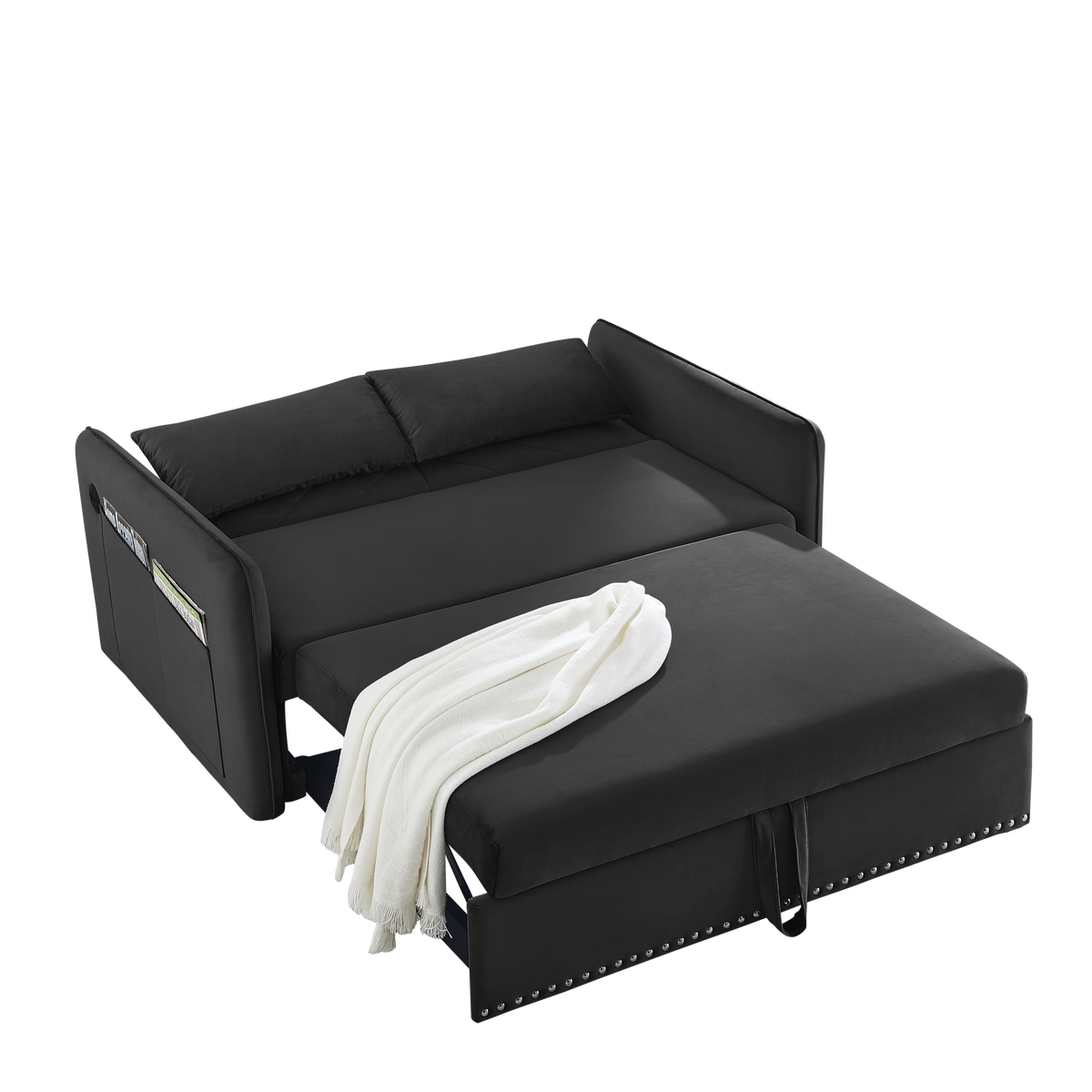 1. Multi-position adjustable pull-out sofa bed with bedhead, By pulling out the bed frame under the seat, this double position sofa can be quickly converted into a bed for resting use. 2. Adjustable and super strong: soft high-grain velvet fabric and high-density foam, it can be used for listening, playing games, reading, and sleeping. It will make you feel relaxed and comfortable. 3. Suitable for any scene: this multifunctional pull-out sofa bed can be placed in living room and bedroom, it can accommodate 2 people to watch TV, play games or read, it can be used for guests or children's bed, modern design and space saving. This is definitely a good choice for applicable small rooms, apartments, studios, offices. 4. Perfect function: pull out the bed frame can quickly turn the sofa into a bed. Pull-out with a bed made of high quality foam and metal iron frame can steadily support you to lie on the bed. 5. Removable storage pockets and soft pillows. Our sofa comes with a side storage pocket that you can conveniently use to store your TV remote., cell phone, glasses or books. Also includes two soft pillows for added back support or sleep. 6. Easy to assemble and use. Easy-to-follow instructions ensure the perfect build and pull-out recliner setup is quick and easy. If you need a video, please contact me.