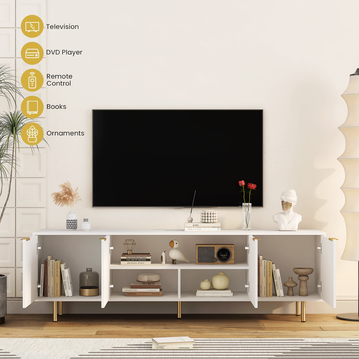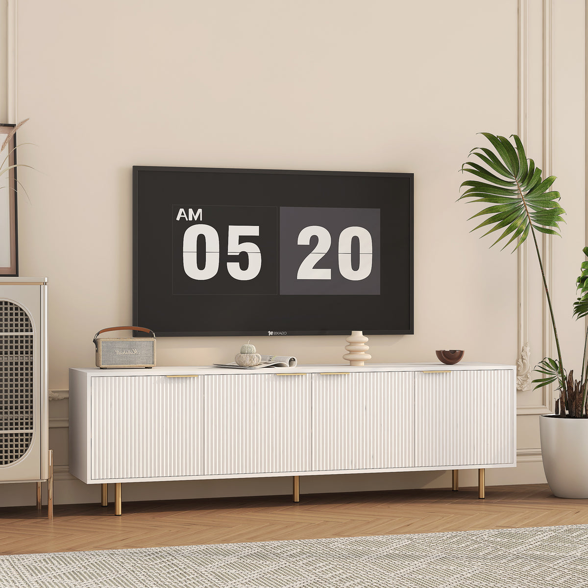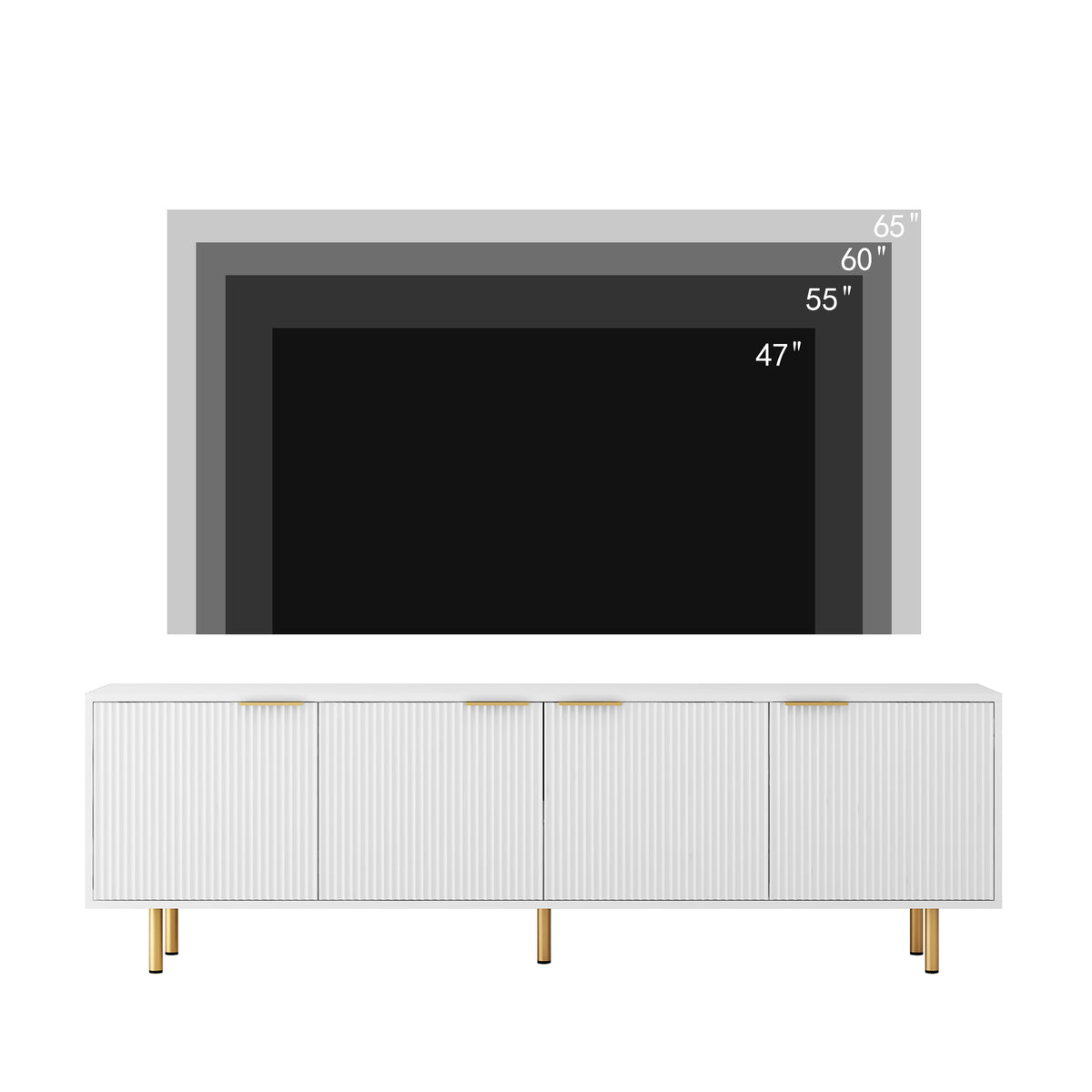 Aria White Modern TV Stand 68 Inch, Fluted Entertainment Console