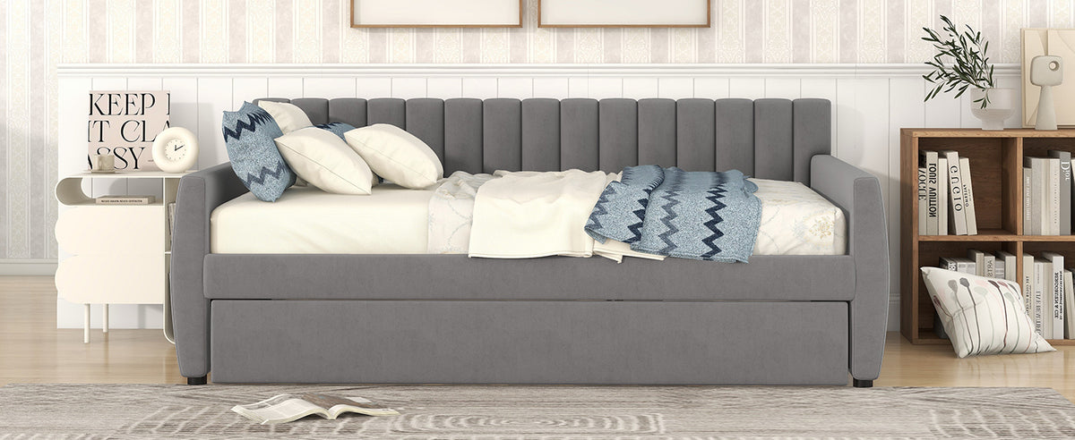Full Size Upholstered daybed with Trundle and Wood Slat Support