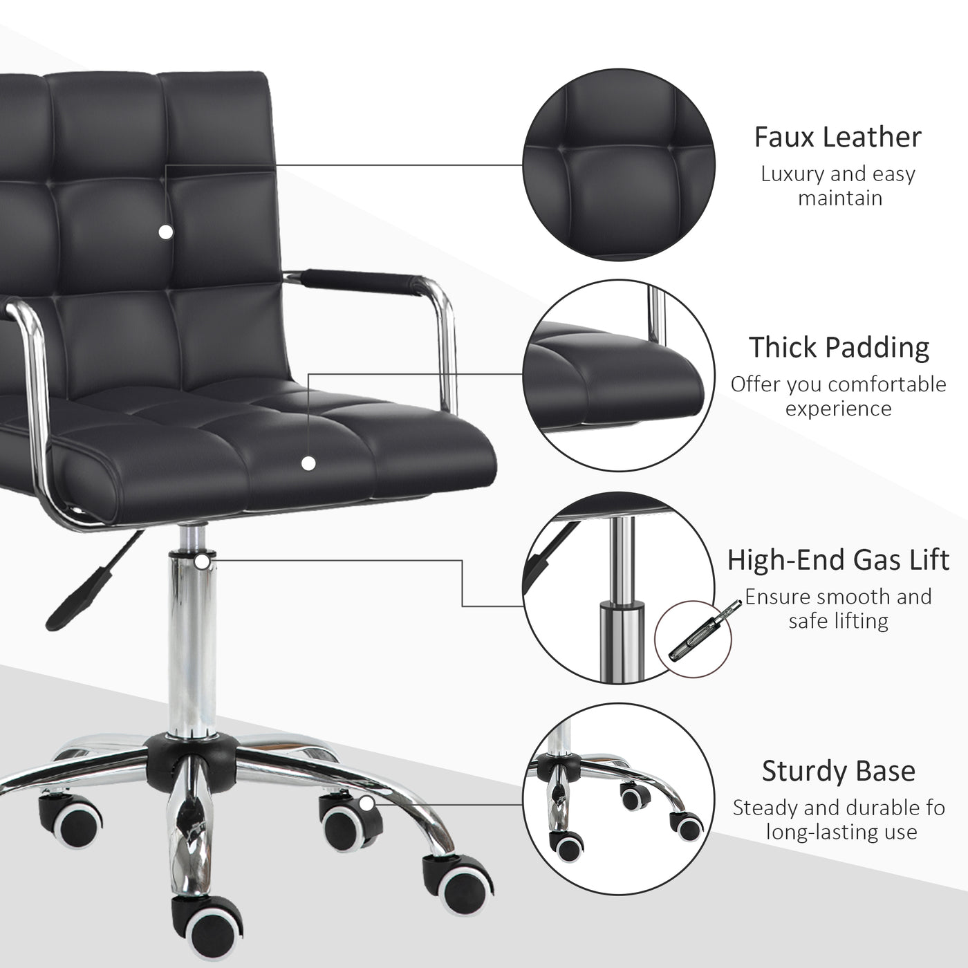 - 360° Mobility: This faux leather office chair has a 360° swivel seat and wheels so you can get around your office with ease and stay seated.